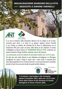 COMITATO VAL DI ZENA INVITA LA CITTADINANZA ALLA 🌿 INAUGURAZIONE DEL GIARDINO DELLA VITA ANT Dedicato a Simone Farinelli 📅 Sabato 8 novembre 2025, dalle…