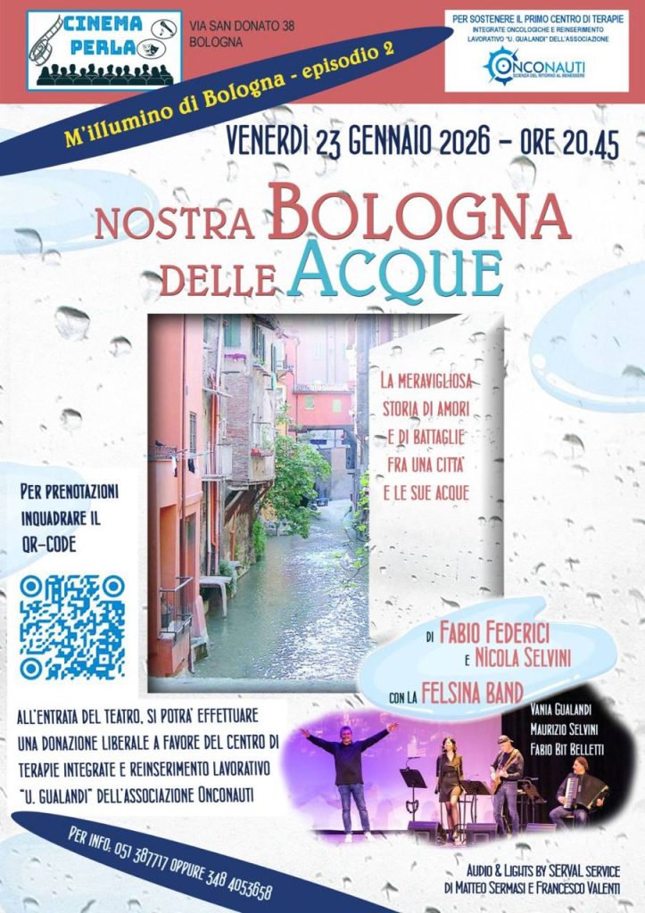 Un viaggio narrativo e musicale che attraversa la storia di Bologna seguendo il filo delle sue acque, dei suoi luoghi nascosti e delle sue memorie più intime.Tra aneddoti sorprendenti, personaggi emblematici e canzoni eseguite dal vivo, lo spettacolo accompagna il pubblico in un percorso capace di incuriosire sin dai primi istanti, per poi divertire, emozionare e, infine, commuovere profondamente.“Nostra Bologna delle Acque” non è soltanto un racconto, ma un’esperienza condivisa, in cui la città si svela poco a poco attraverso parole, musica e immagini, lasciando un segno autentico in chi ascolta. Non a caso, due spettatori su tre hanno scelto di tornare a vederlo: un dato che parla da sé e che testimonia la forza coinvolgente di questo progetto.A rendere questa serata ancora più significativa è il suo valore solidale: il ricavato sarà interamente donato per sostenere le spese del centro di Terapie Integrate Oncologiche e Reinserimento Lavorativo dell’Associazione Onconauti, contribuendo concretamente a un’importante realtà del territorio.Se ami Bologna, la sua storia e le sue atmosfere, e desideri partecipare a un evento che unisce cultura, emozione e impegno sociale, questa è un’occasione da non perdere.