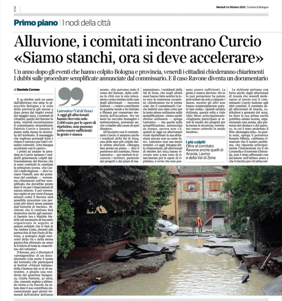 Alluvione, i comitati incontrano Curcio (Corriere, 14.10.2025)