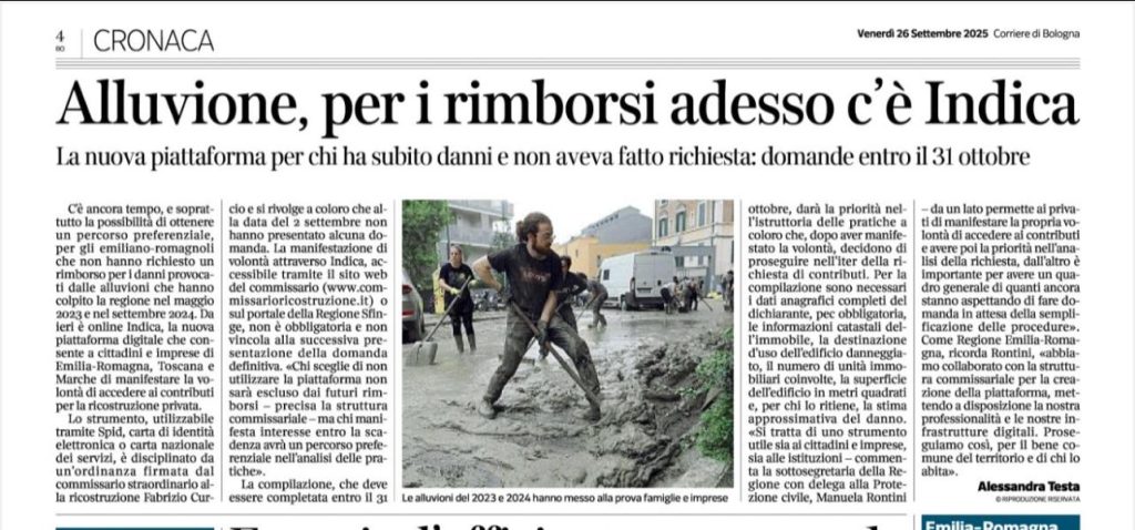 Alluvione, per i rimborsi adesso c’è INDICA (Corriere 26 Settembre 2025)