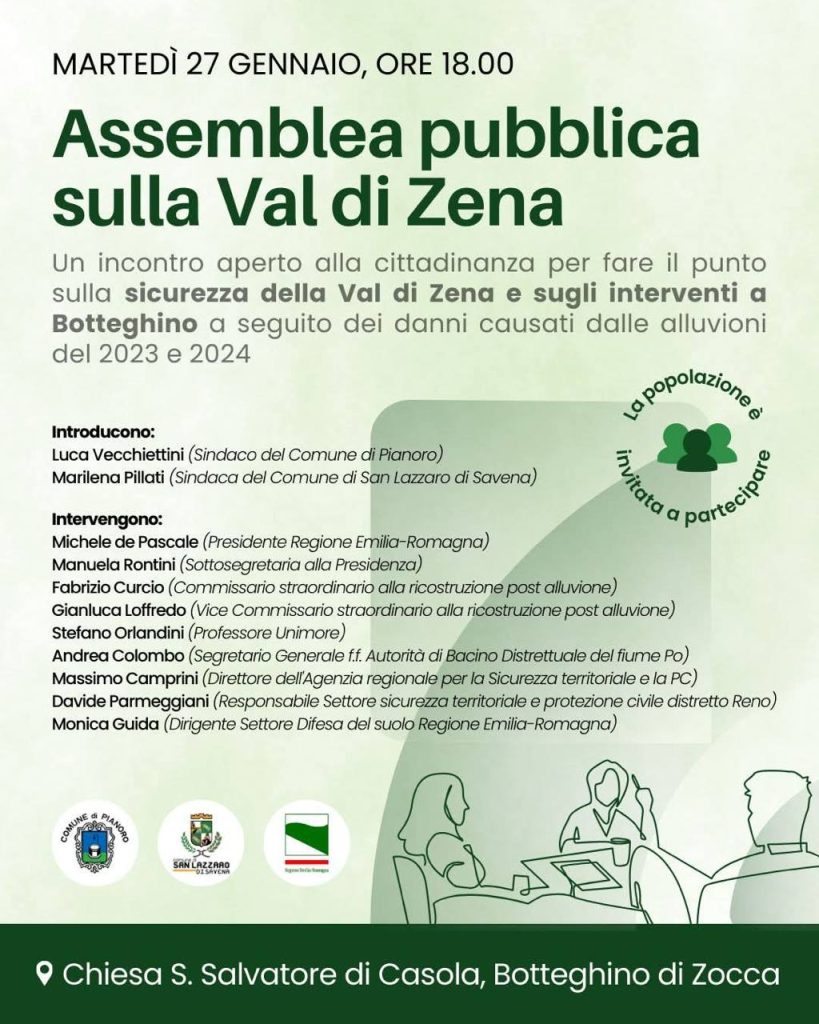 Il Comitato Val di Zena informa la cittadinanza che martedì 27 gennaio 2026, alle ore 18:00, si terrà un’assemblea pubblica presso la Chiesa di San Salvatore di Casola, in via Zena 61 – Botteghino di Zocca, 40065 Pianoro (BO).