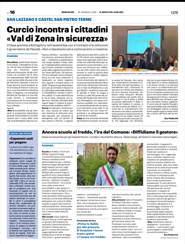 Curcio incontra i cittadini, “Val di Zena in sicurezza” (il Resto del Carlino 28-01-2026)