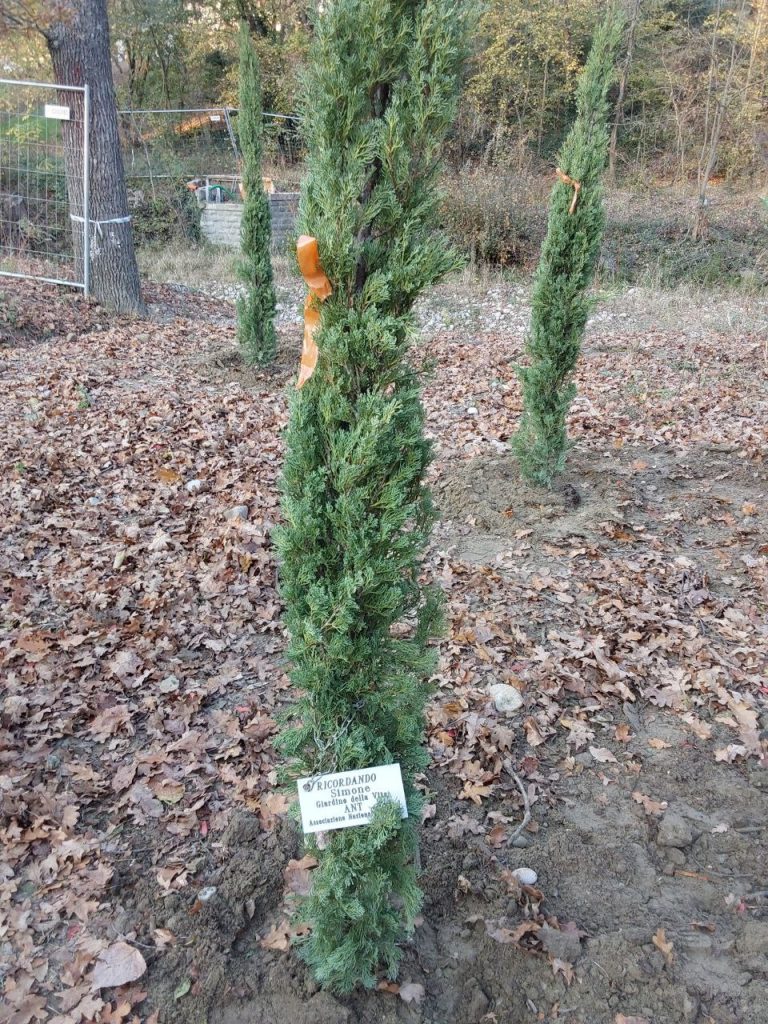Nel giardino sono stati piantati cinque cipressi resistenti al cancro, alberi scelti come emblema di forza e continuità.
