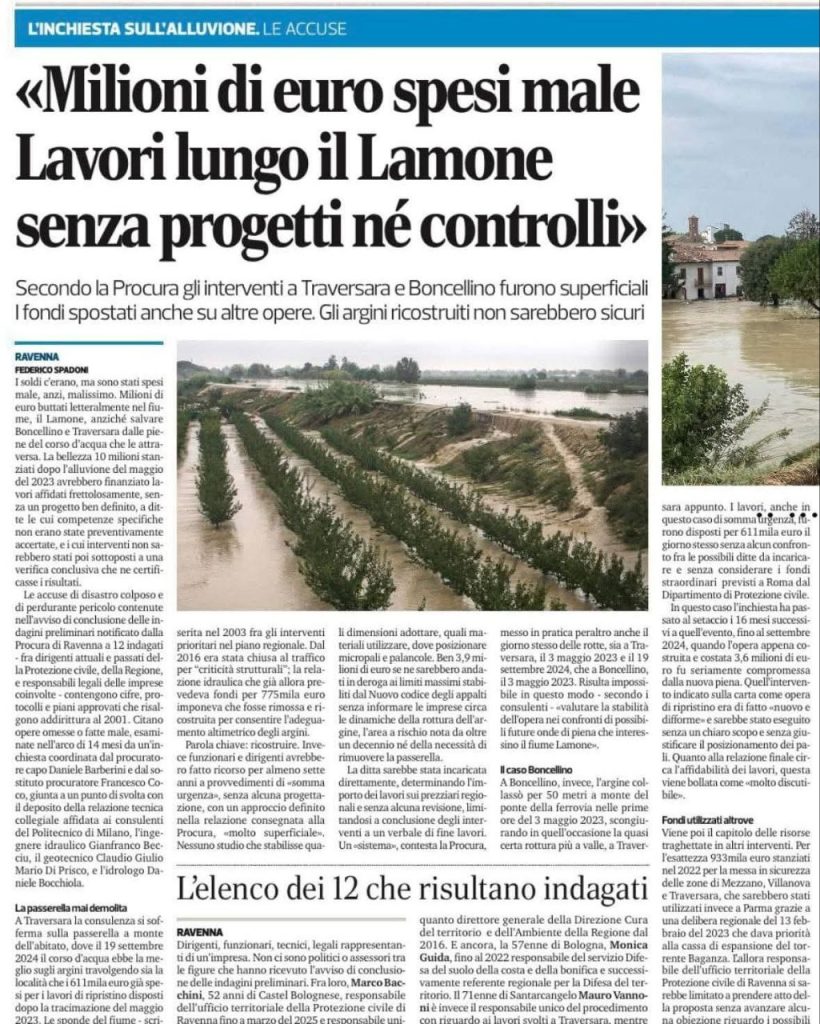 La vicenda solleva interrogativi gravi sulla gestione degli appalti pubblici, sulle modalità di progettazione e controllo degli interventi e sull’utilizzo delle risorse economiche, soprattutto in un territorio già caratterizzato da fragilità ambientali e idrogeologiche.