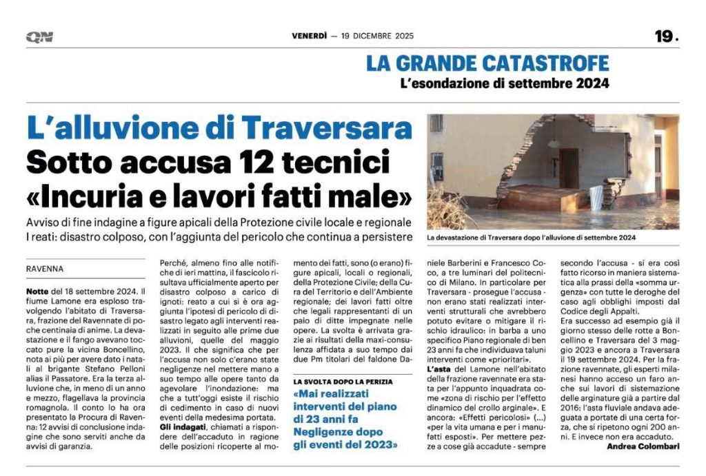 Il Comitato Val di Zena esprime forte preoccupazione per quanto emerso in merito ai lavori pubblici realizzati nel Comune di Traversara e nella frazione di Boncellino, nel Ravennate.