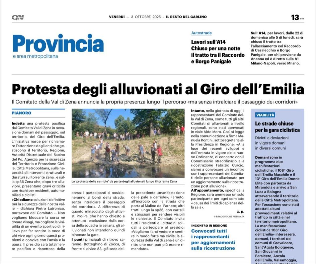 Protesta degli alluvionati al Giro dell’Emilia (Carlino 03 Ottobre 2025)